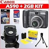 The Canon PowerShot A590 IS Digital Camera provides astounding Photographic Power, yet is easy enough to use so that even beginners can create phenomenal images. It produces impressive image quality with a resolution of up to 8.0 megapixels and a 4x Optical Zoom lens that has Canon's renowned Optical Image Stabilizer incorporated into it to provide blur-free photos. A wide range of shooting modes cover most shooting situations, allowing users to shoot without having to worry about camera settings. Shooting is simplified even further with the addition of an Easy Mode while the most commonly used Special Scene modes are easily accessible right on the camera's Shooting Mode dial. ++PLUS++ ACCESSORY KIT: - 2GB SD CARD - CARRYING CASE - LCD SCREEN PROTECTORS - CLEANING KITS - MINI TRIPOD - 25 FREE PRINTS.